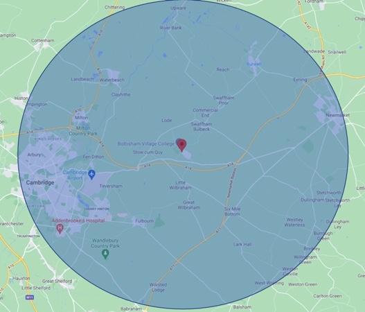 We offer a free pick-up service within a seven-mile radius of Bottisham, which includes the surrounding villages, Cambridge and Newmarket.